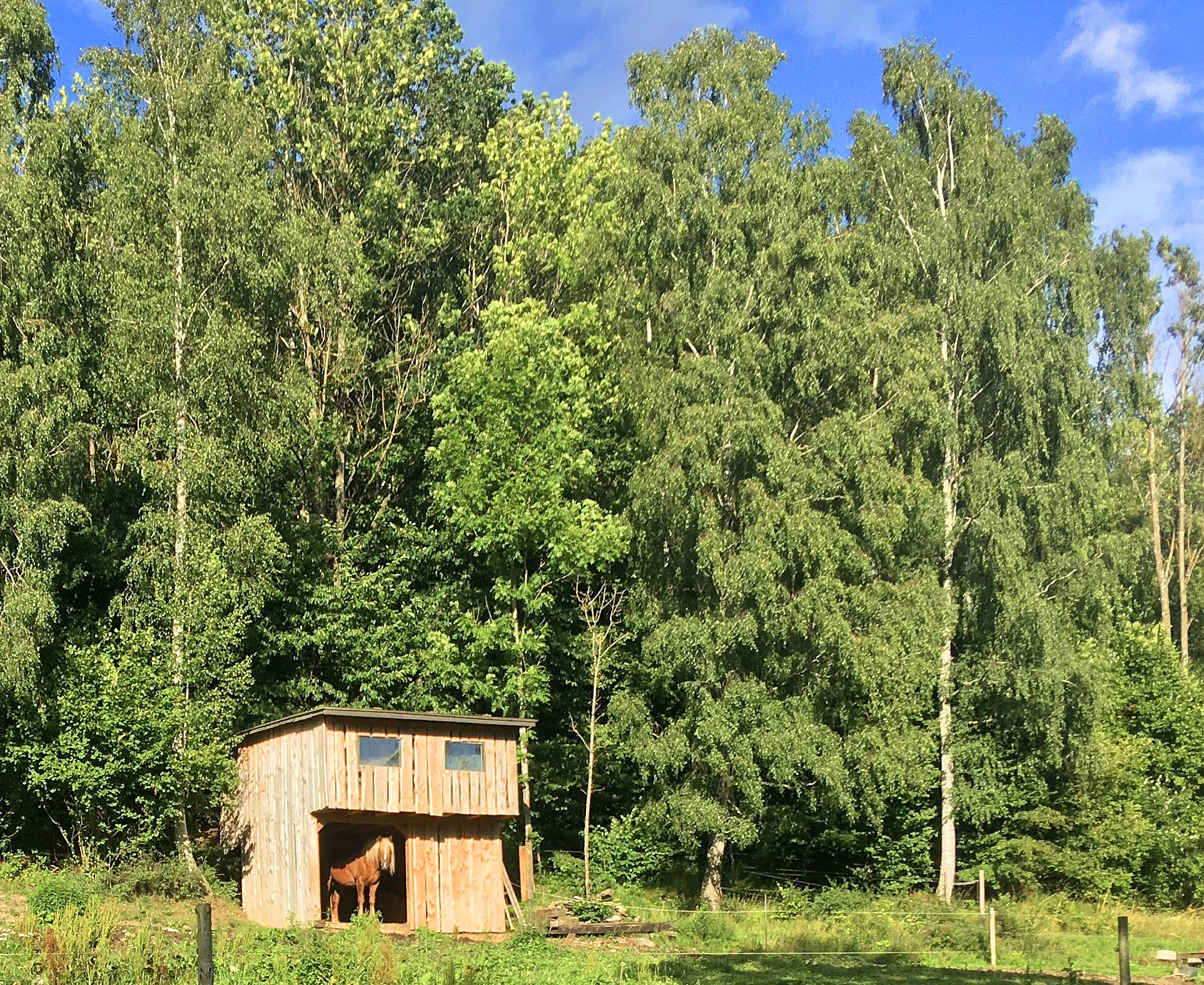 Hned brzy tu je stáj kousek za obcí. A taky keře malin u kterých jsem se zastavil.